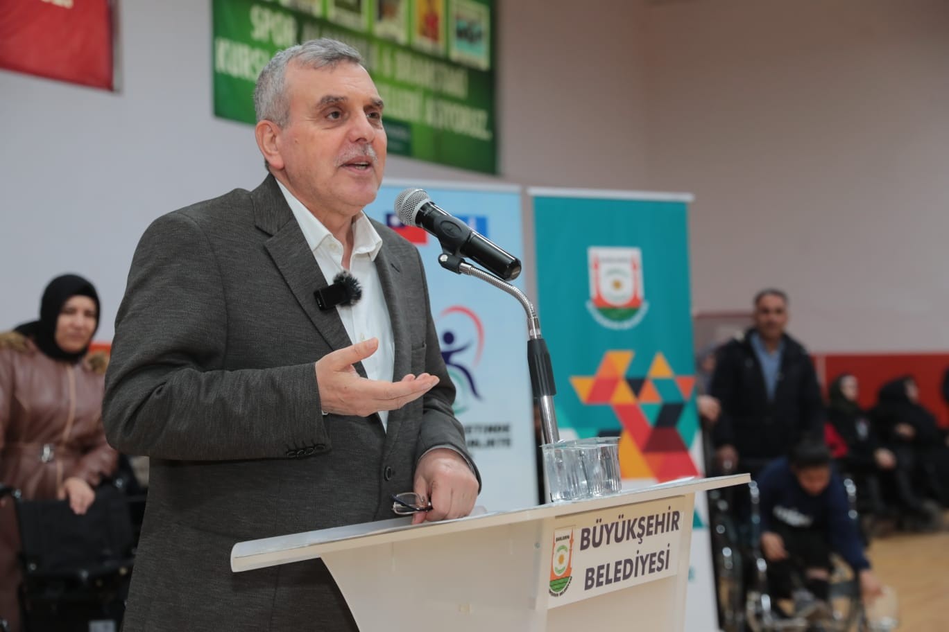 Engellilerin sevgi seliyle karşılanan Başkan Beyazgül, tüm engellilerle birebir ilgilenerek, sevgilerine karşılık verdi.