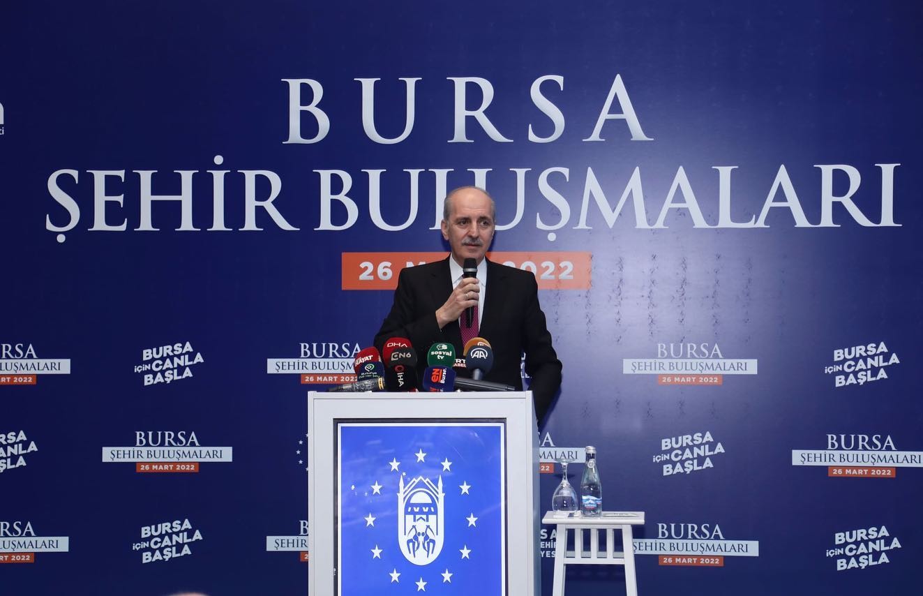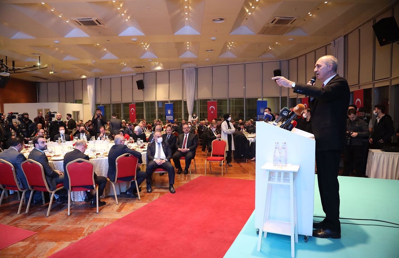 AK Parti Genel Başkanvekili Prof. Dr. Numan Kurtulmuş, her gittikleri şehirde bu tür toplantılar düzenlediklerini hatırlattı. Toplantılarda, salonu dolduran kişilere de söz vermenin kendileri için önemli olduğunu söyleyen Kurtulmuş, herkesi dinlemekten mutluluk duyduklarını belirtti. Türkiye ve dünya genelinde yaşanan olayların analizini yapan Kurtulmuş, son 15 yıldır vekâlet savaşları adı altında büyük güçlerin ellerini ataşe sokmadan maşalarıyla bölgeleri yeniden dizayn etmeye çalıştığını ifade eden Kurtulmuş, “Bunun en büyük bedelini ödemiş ülkelerden biri de Türkiye’dir. Bu güçlerin silah, lojistik destek, istihbarat desteği ve kendi başkentlerinde siyasi destek için imkan verdikleri terör gruplarının Türkiye’nin nasıl başına bela olduğunu yaşayarak görüyoruz. Gerilim alanlarının, bütün coğrafyaların tam merkezinde Türkiye yer almaktadır. Bu coğrafyada güçlü ve ayakta durmaktan başka şansımız yoktur. Çok daha bütünleşmiş ve bir arada olmamız gerekiyor. Her birimizin aynı hedefe yönelmesi gerekiyor. Hepimizin ortak hedefi güçlü bir Türkiye olmalıdır. Zaten Türkiye, önemli bir ivme yakaladı. Yaşanan savaşın Türkiye’nin önderliğinde son bulacağını düşünüyorum. Türkiye’nin önlemez yükselişine de hep birlikte şahit olacağız” dedi.