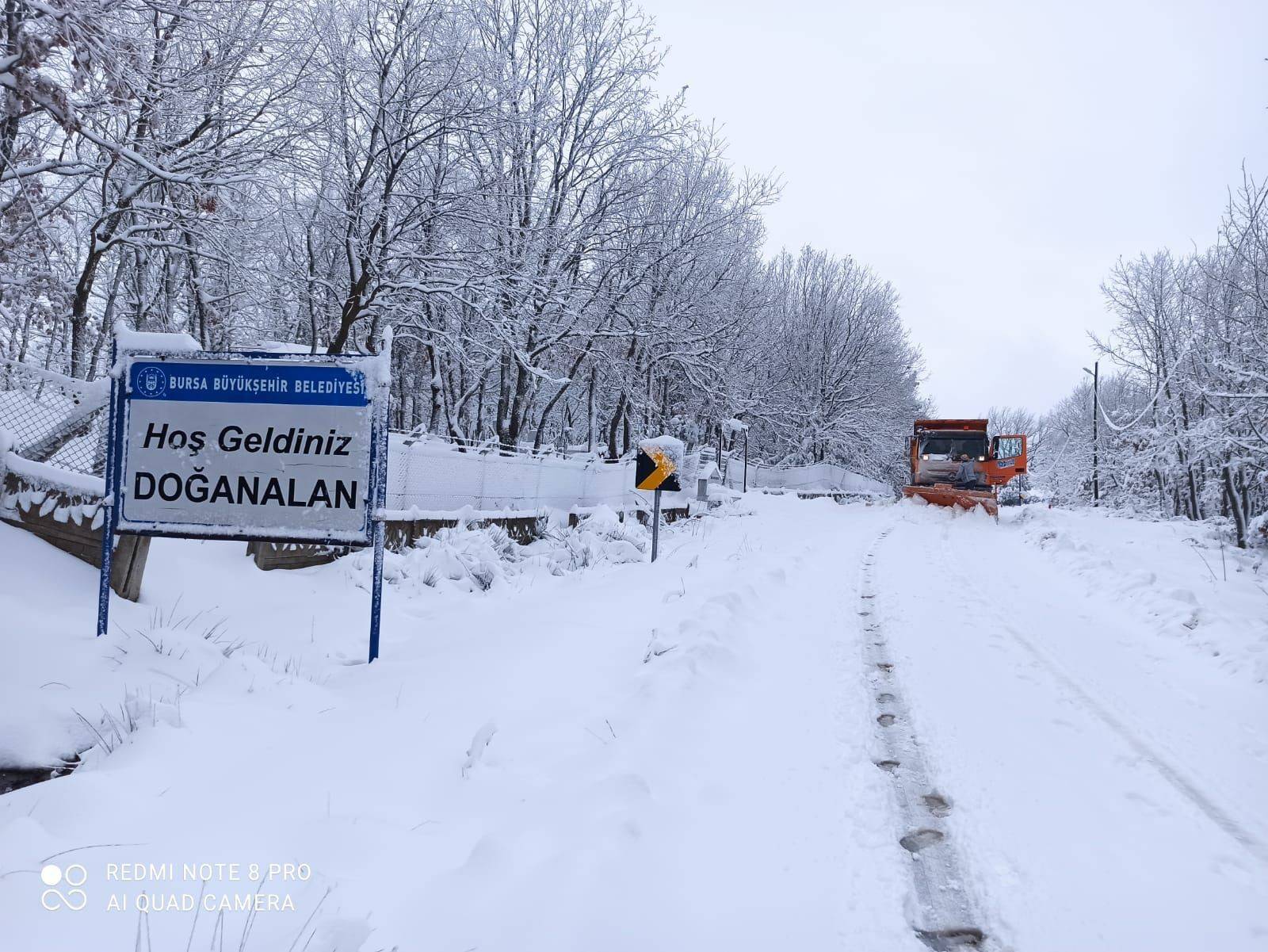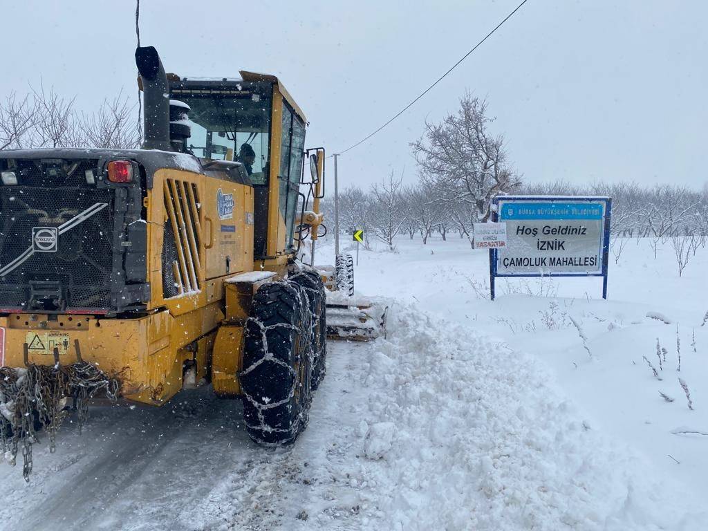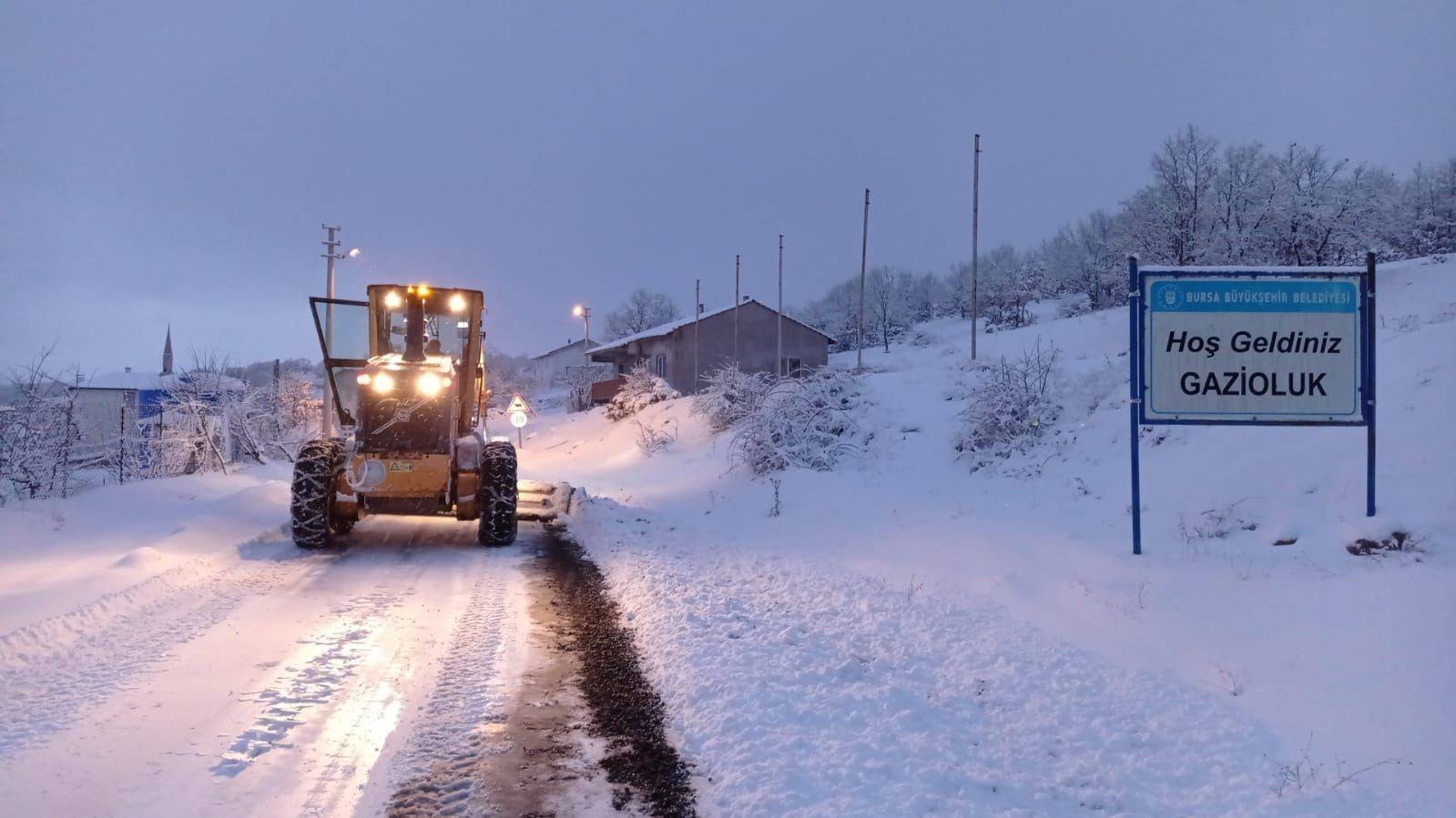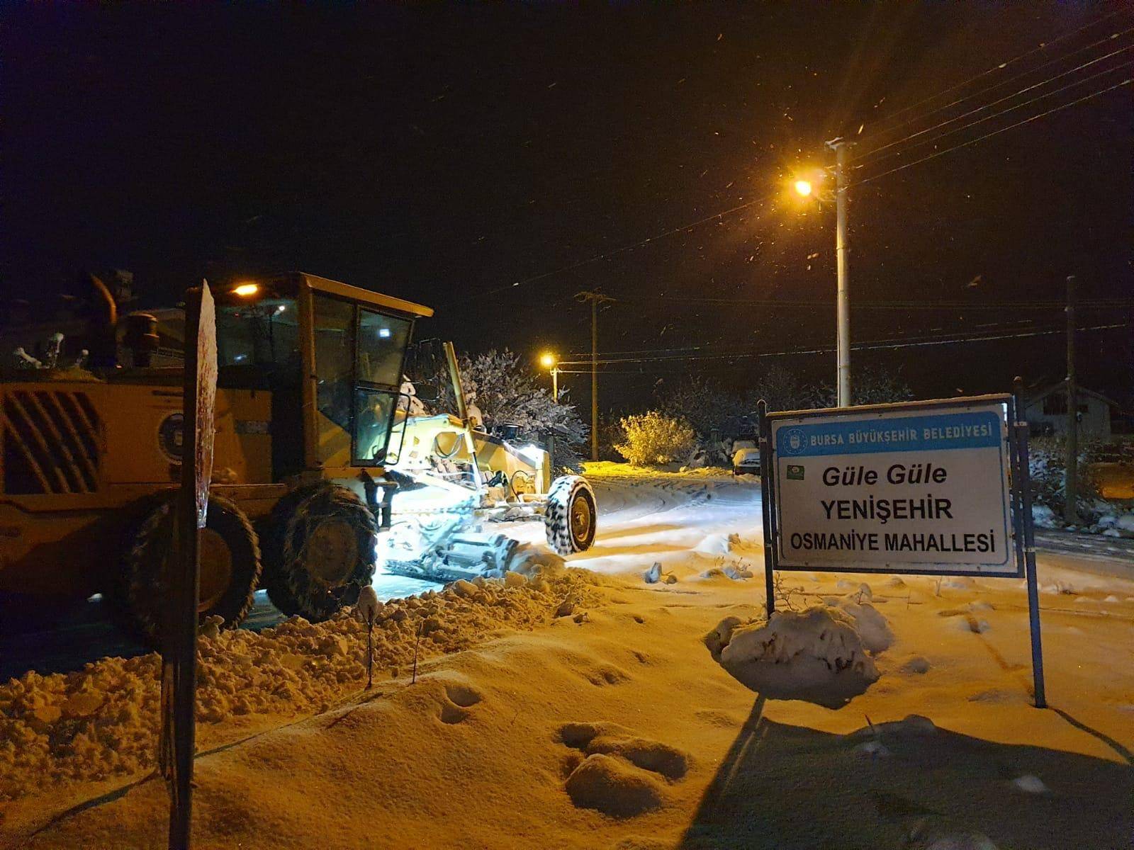 Bursa Büyükşehir Belediyesi ekipleri, 17 ilçedeki karla mücadele çalışmaları kapsamında son 24 saat içinde kapanan 627 mahalle yolunu ulaşıma açtı. Yağışın yoğun olarak devam ettiği 92 mahallenin yolunu açma çalışmaları da devam ediyor.