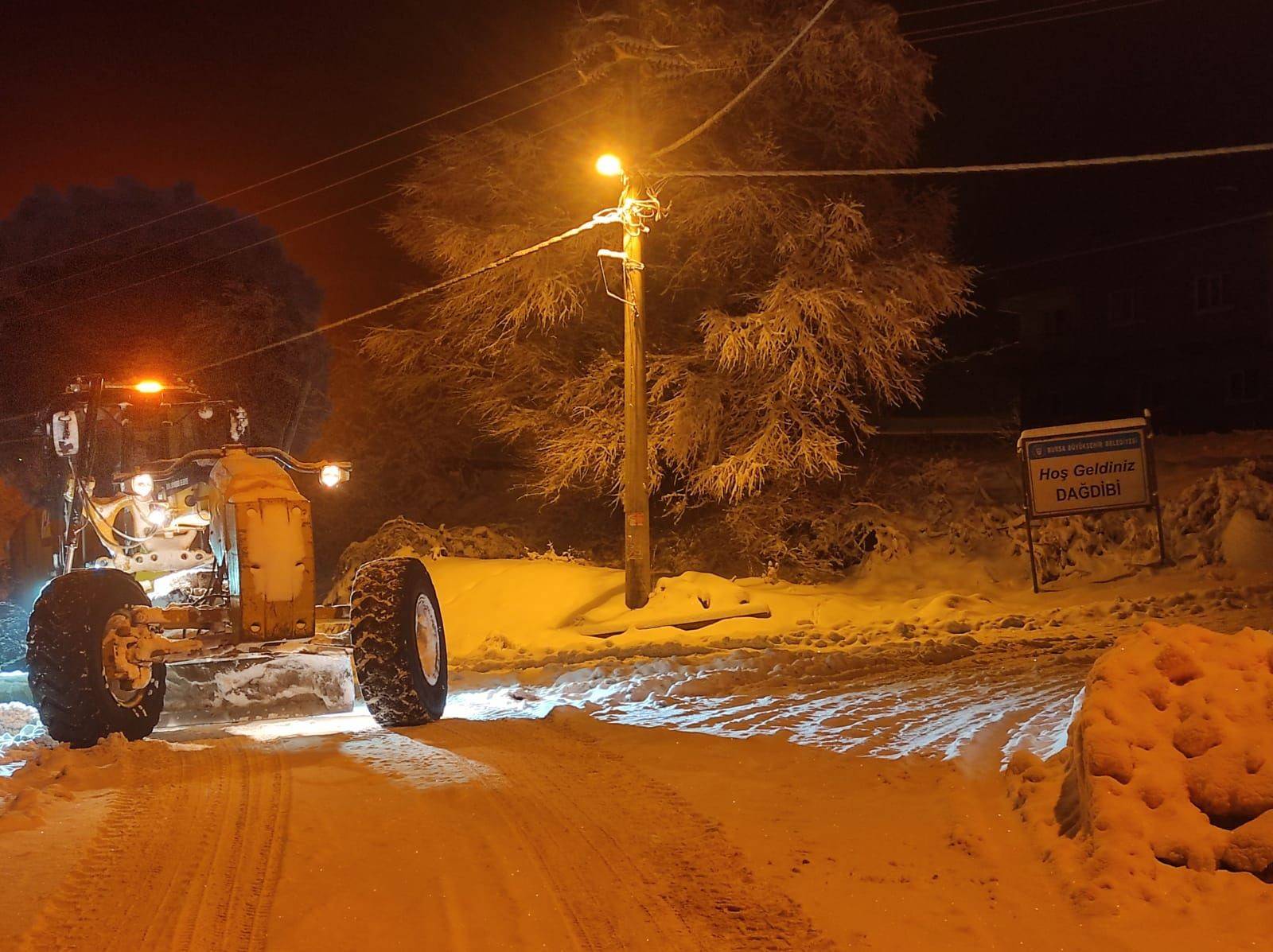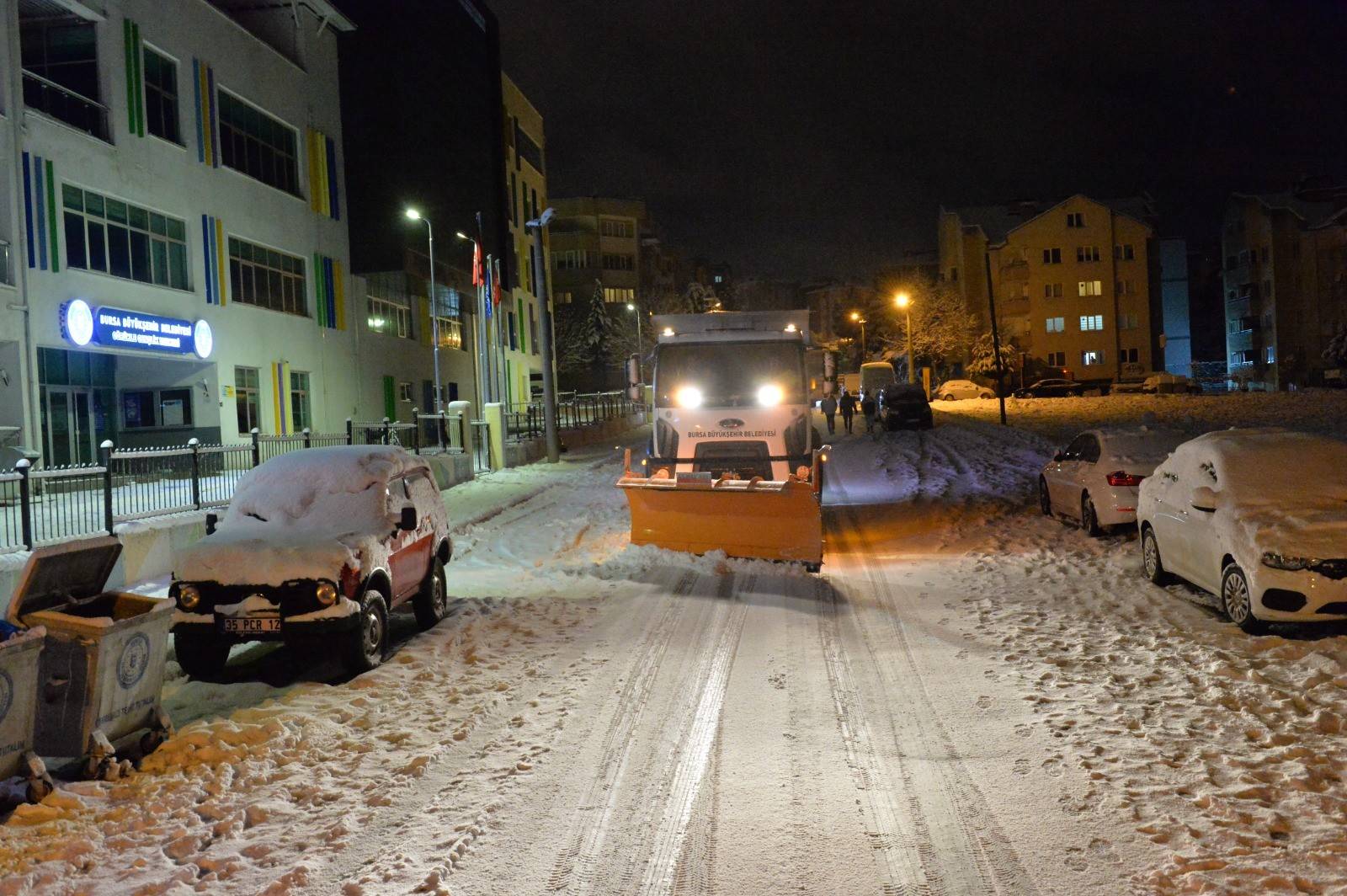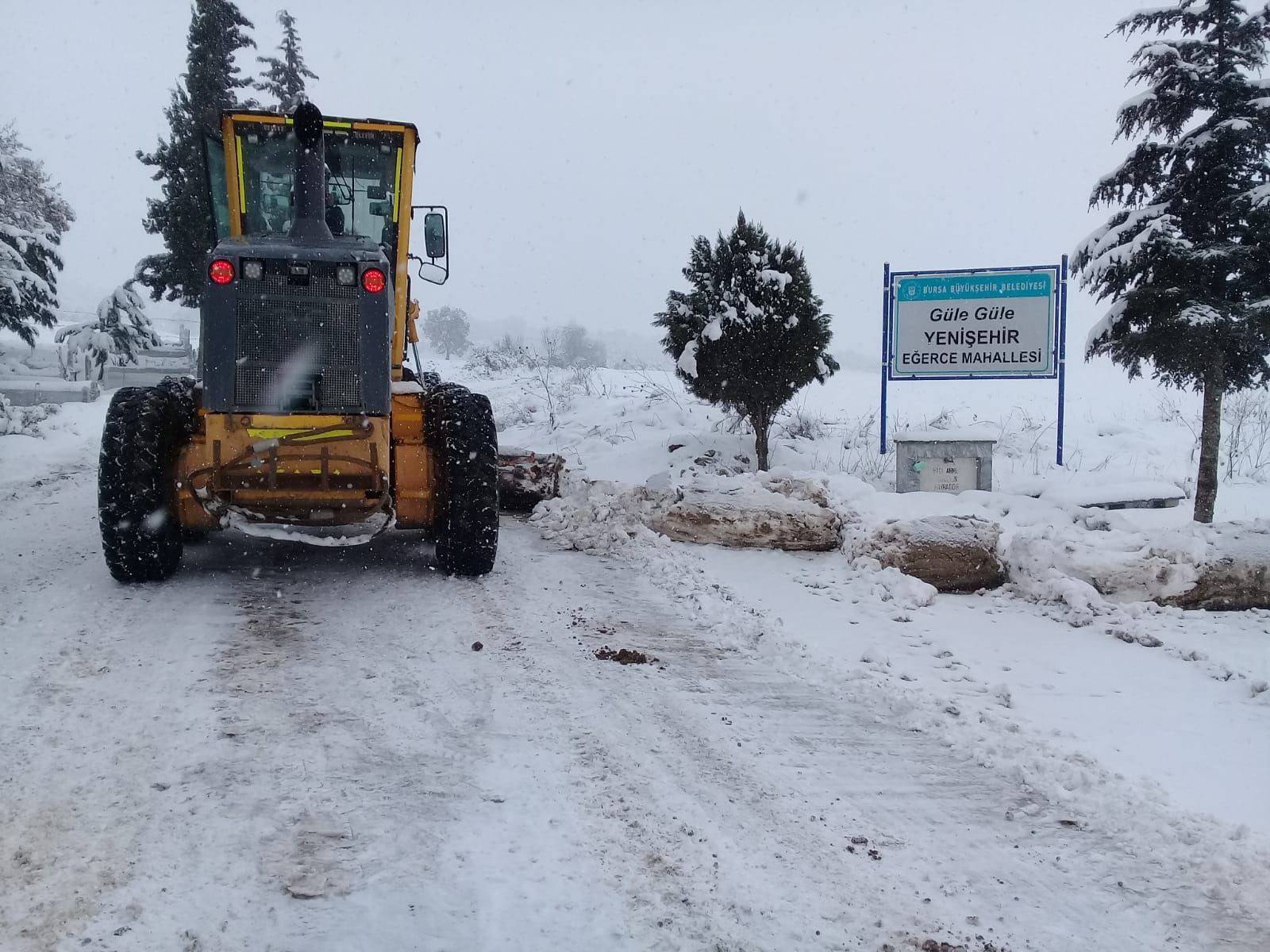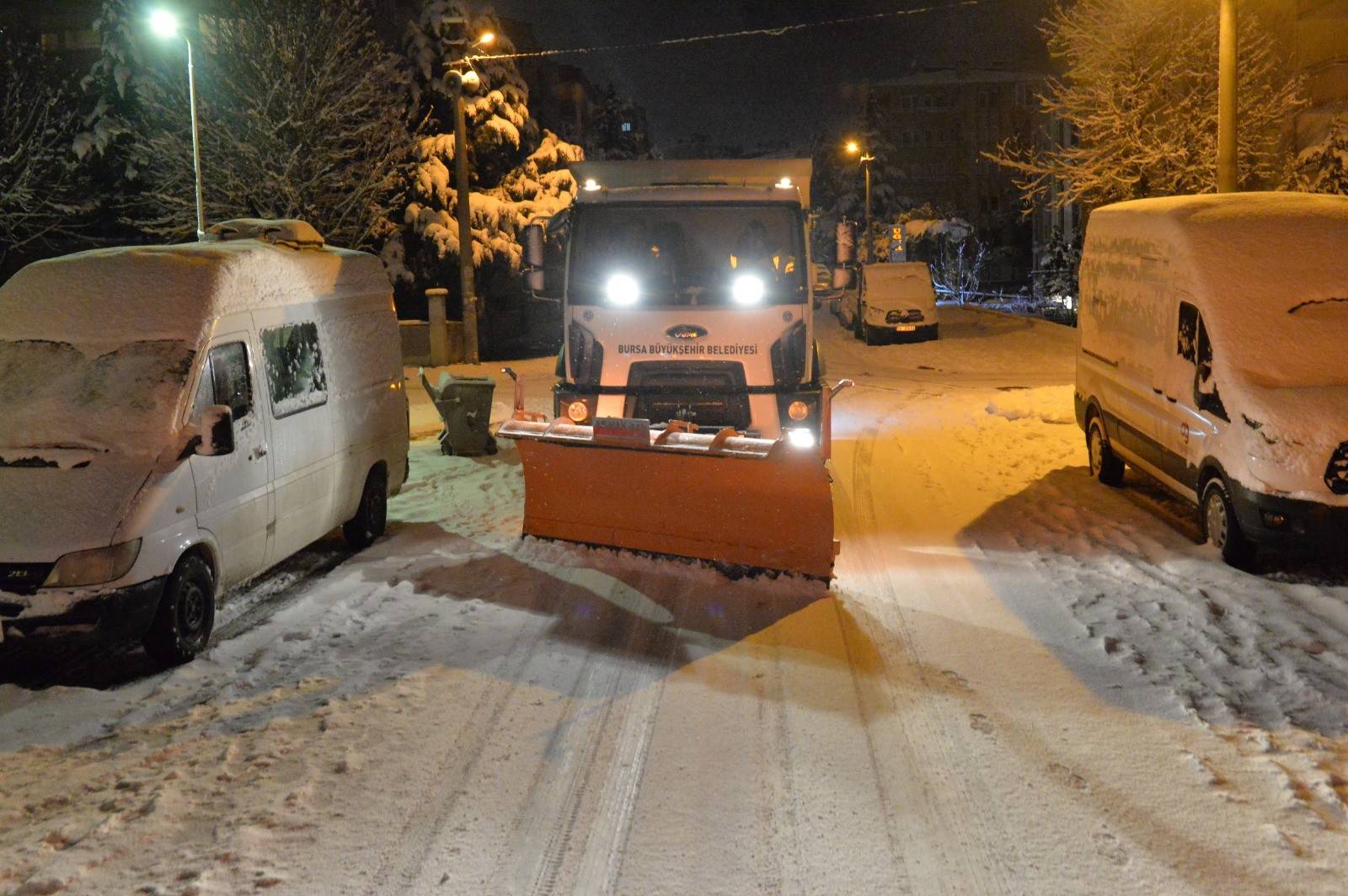 Bursa Büyükşehir Belediyesi ekipleri, 17 ilçedeki karla mücadele çalışmaları kapsamında son 24 saat içinde kapanan 627 mahalle yolunu ulaşıma açtı. Yağışın yoğun olarak devam ettiği 92 mahallenin yolunu açma çalışmaları da devam ediyor.
