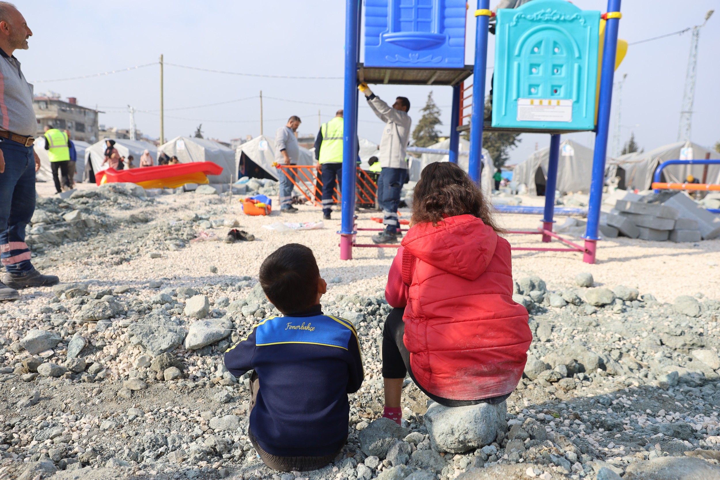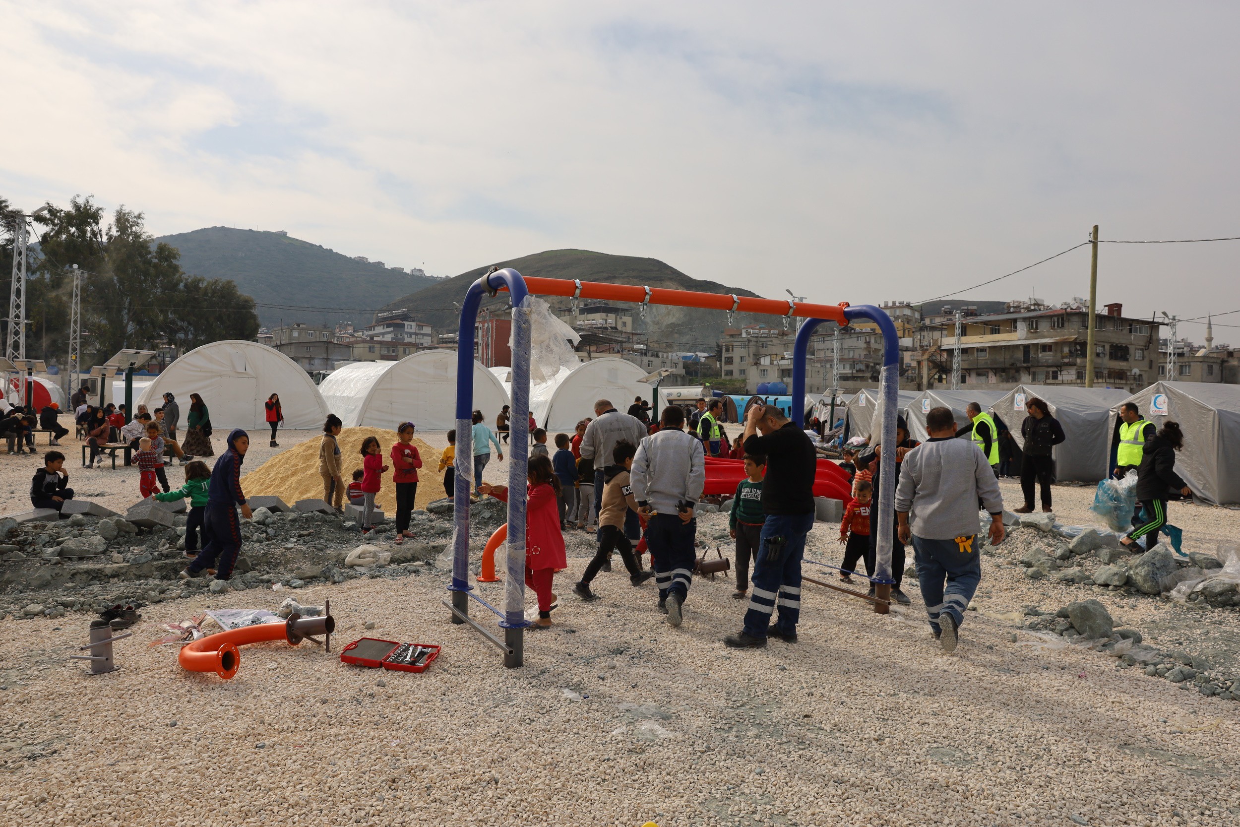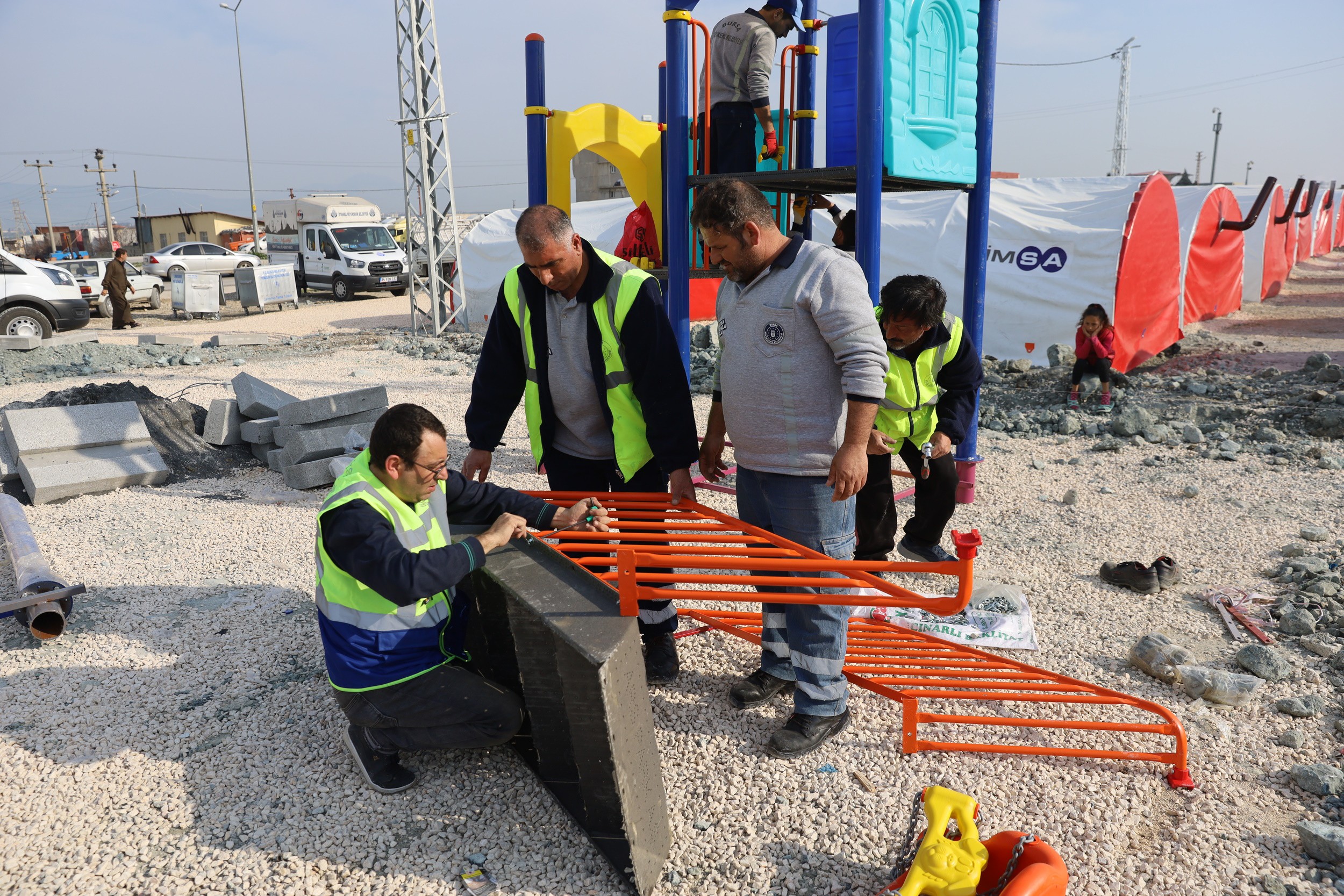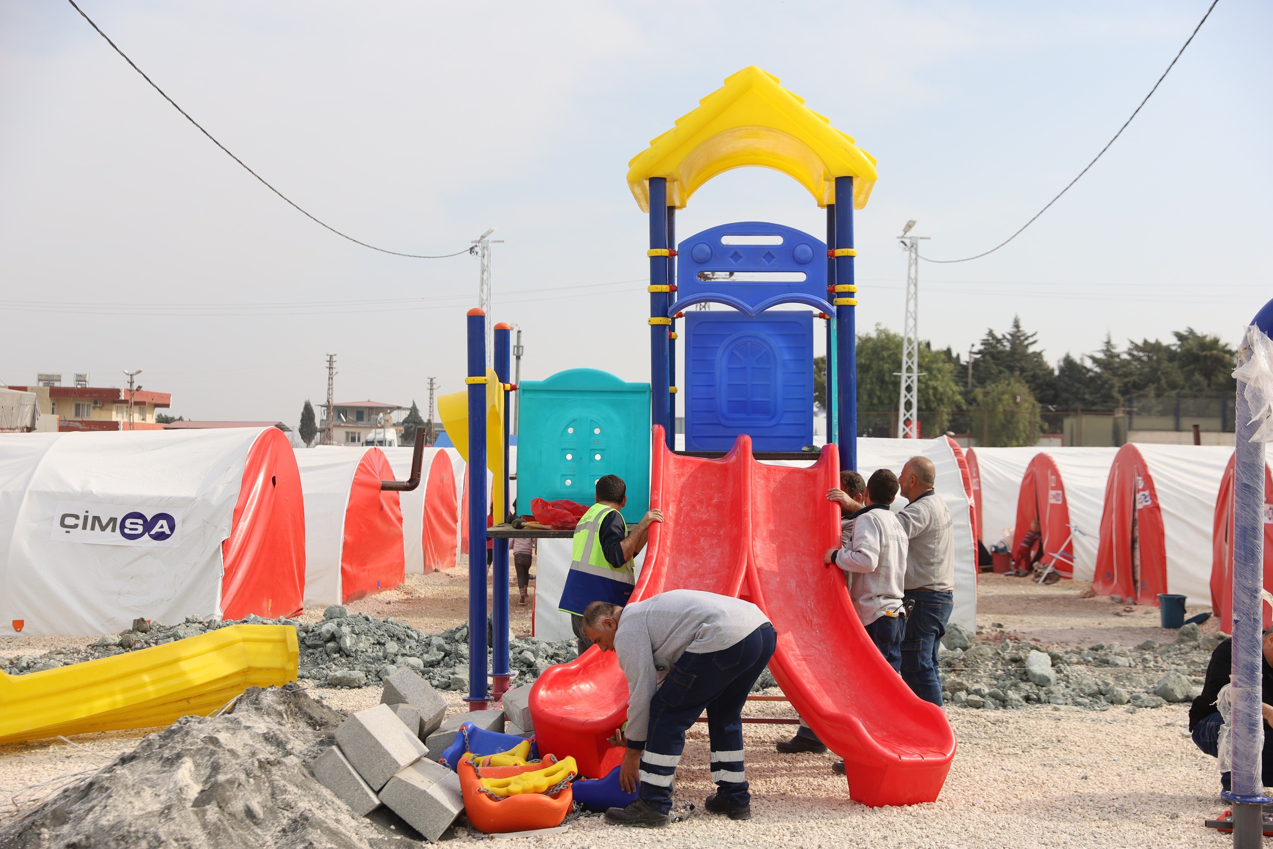 Hatay’da deprem mağduru vatandaşların yaralarını sarmak için köy köy mahalle mahalle gezen Bursa Büyükşehir Belediyesi ekipleri, depremzede çocukları da ilk günden beri ihmal etmiyor. Hataylı küçük depremzedeleri mutlu edebilmek için gördükleri her yerde oyuncak veren ekipler, bu kez de çadır ve konteyner kentlerde oyun parkı kurulumuna başladı.