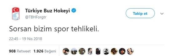 Türkiye Buz Hokeyi Federasyonu'nun resmi twitter hesabından olaylı derbi sonrasında ''Sorsan bizim spor tehlikeli'' mesajı paylaşıldı.