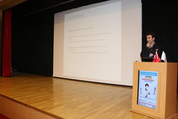 Üniversite Dekanlık Konferans Salonu’nda düzenlenen etkinlikte BVU Çocuk ve Ergen Ruh Sağlığı ve Hastalıkları Anabilim Dalı Başkanı Yrd. Doç. Dr. Vahdet Görmez konuyla ilgili önemli ayrıntılara dikkat çekti. Dikkat eksikliği yaşayan çocukların bu durumu kasıtlı olarak yapmadığına dikkat çeken Görmez, “Dikkat eksikliği olan çocuklarda sorunlardan biri bu durumun elinde olmamasıdır. Bu beynin ön kısmındaki lobun sorunlu olmasıdır. Yani yeni beyin olgunlaşmamıştır. Bu tembel bir ön beyindir ve olgunlaşacaktır. Dolayısıyla bu çocuğun elinde olan bir şey değildir. Çocuğun çok konuşması hemen sıkılması gibi sebepler elinde olan sebepler değildir. Bu çocuk yaramaz olduğu için değil, elinde olmadığı için böyle davranıyordur. Davranışlar kontrol edilemez. Bir şey yapmadan önce düşünme yetisi yeterince çalışmıyordur” dedi.