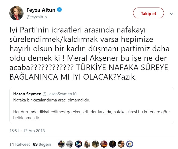 Süresiz nafaka adaletsizliğinin kaldırılmasının istenmesine çıldırdı ve İYİ Partili ismin yoruma 'Kadın düşmanlığı' dedi