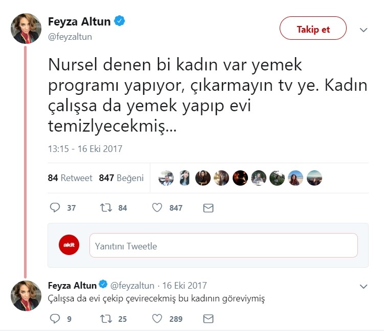 2017'den önceki tweetlerini silse de arşive takılan tweetleriyle işte Feyza Altun'un zihniyeti: