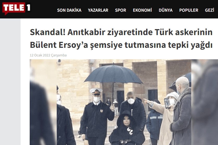 Ersoy'a ziyareti süresince eşlik ederek şemsiye tutan subayı TELE 1 televizyonu da eleştirdi. TELE 1'in internet sitesindeki haberde, "Skandal! Anıtkabir ziyaretinde Türk askerinin Bülent Ersoy’a şemsiye tutmasına tepki yağdı" başlığı kullanılarak, sosyal medyada yer alan tepki mesajları verildi.