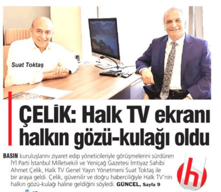 Özellikle koronavirüs sürecinde yaptığı yalan haberlerle gündeme gelen Halk TV’ye ziyaret gerçekleştiren İYİ Partili Milletvekili ve Yeniçağ imtiyaz sahibi Ahmet Çelik, Halk TV Genel Yayın Yönetmeni Suat Toktaş ile bir araya geldi.