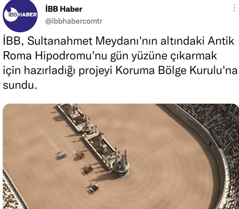 Mesajda, "İBB, Sultanahmet Meydanı'nın altındaki Antik Roma Hipodromu'nu gün yüzüne çıkarmak için hazırladığı projeyi Koruma Bölge Kurulu'na sundu." denildi.