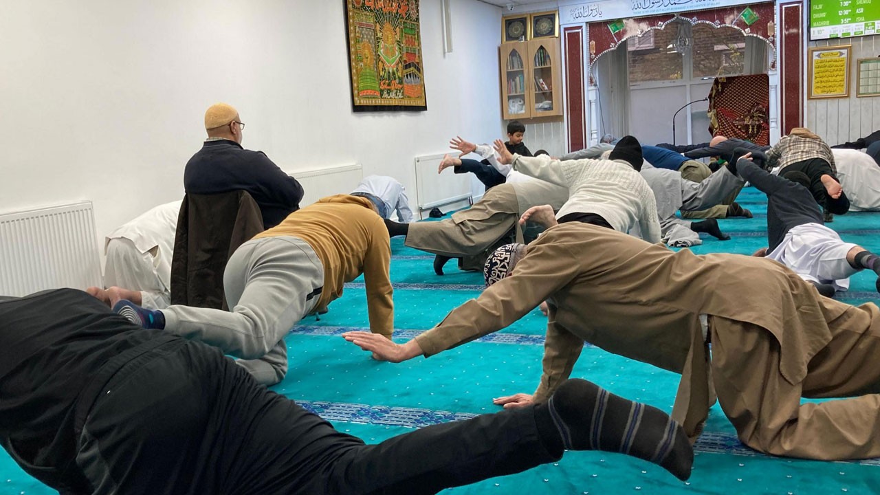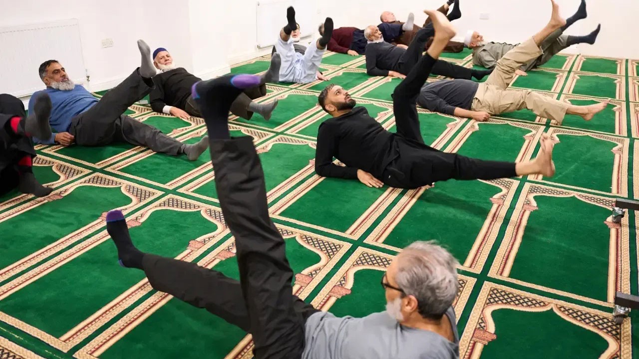 Bradford'da bulunan bir camide, öğle namazının ardından düzenlenen pilates dersleri, özellikle ileri yaştaki erkekler arasında hem fiziksel aktivite hem de sosyalleşme imkanı sunuyor. Pilates derslerine katılan ve çoğunluğu emekli olan erkekler, namaz sonrası caminin alt katında bir araya gelerek, haftada bir 45 dakikalık derslerde squat, esneme ve denge hareketleri yapıyor.