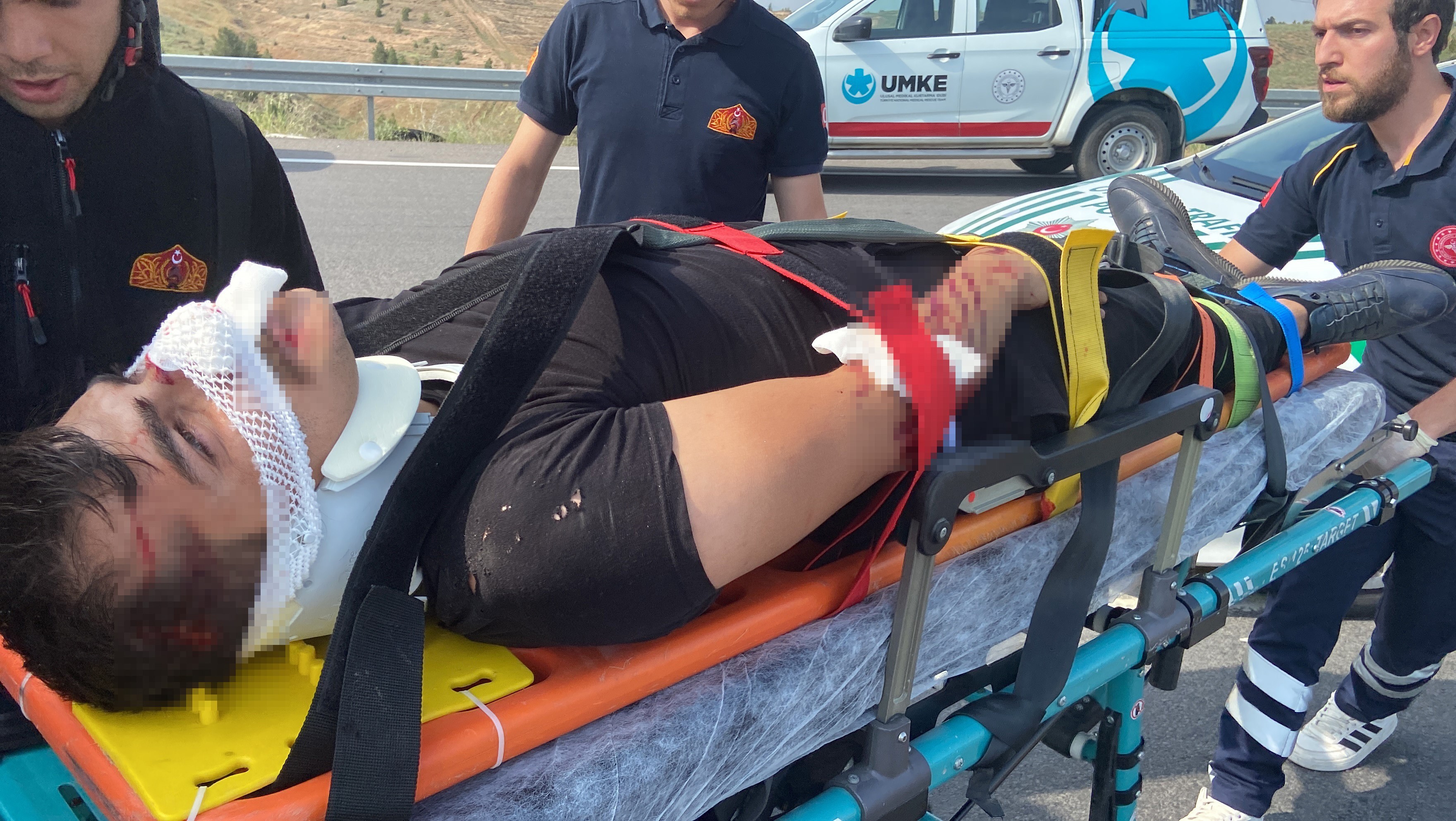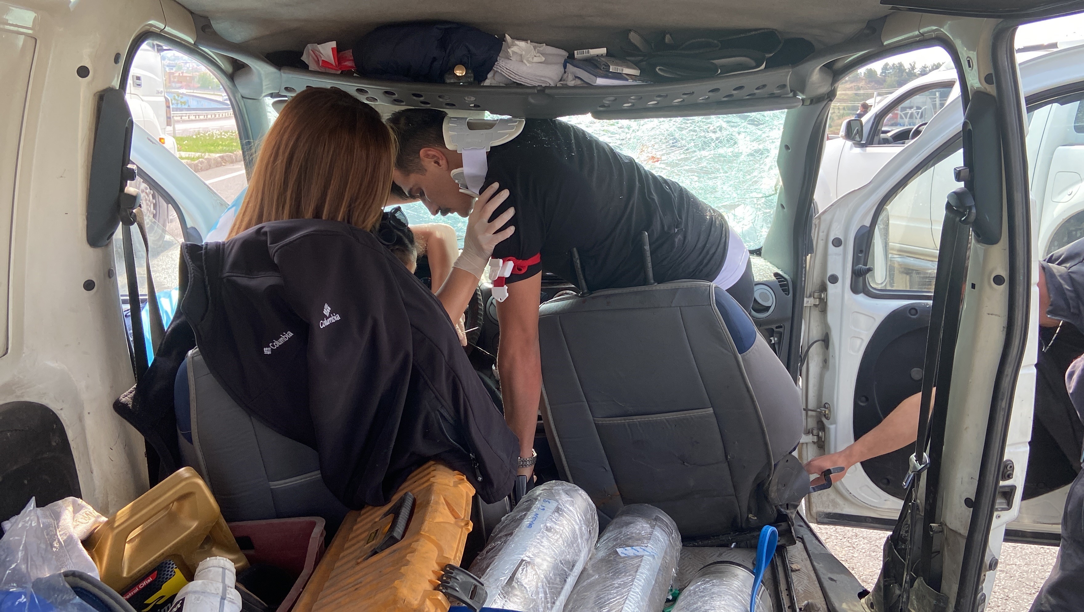 Kaza ihbarı üzerine olay yerine polis, itfaiye, Ulusal Medikal Kurtarma (UMKE) ve sağlık ekipleri sevk edildi. Olay yerine gelen sağlık ve UMKE ekipleri yaralıya ilk müdahaleyi kamyonet içinde yaptı. Damar yolu açılıp serum bağlanan yaralı kamyonet içinde zaman zaman feryat ederek yardım istedi. Sağlık ekipleri yaralının bilincinin açık kalması için sürekli olarak sohbet edip sorular sorarken, yaralı C.Y.A. bir ara acısını unutup sağlık ekiplerine, “Yüzüm çok mu kötü” diye sordu. Sağlık ekiplerinin yaralıya küçük bir çizik olduğunu söylemesine rağmen yaralı “Tüh” diyerek üzüntüsünü dile getirdi.