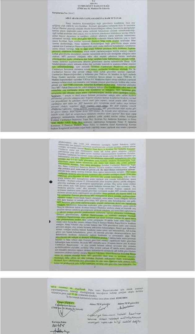 -"Üsteğmen ve Adana Jandarma İstihbarat Müdürü ifadelerinde 'Kim ekledi bilmiyoruz' demişler."
