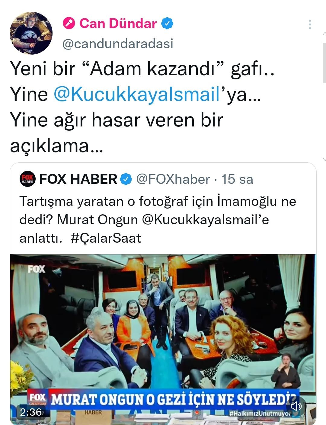 CHP'li İBB Başkanı Ekrem İmamoğlu'nun seçim otobüsündeki fotoğraf tartışmaları sürerken Almanya'da firari olan Can Dündar, konuyla ilgili tartışmaları alevlendiren Fox Tv sunucusu İsmail Küçükkaya'yı ihanetle suçladı.