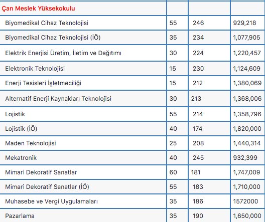 18 Mart Üniversitesi 2 yıllık bölümleri taban puanları başarı sırası