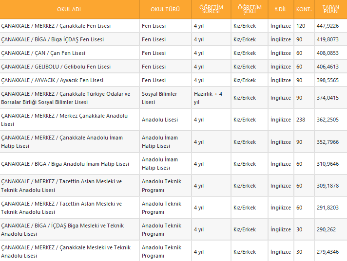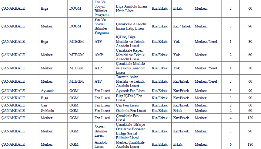 Çanakkale liseleri taban puanı 2021 Çanakkale liseleri başarı sıralaması |Çanakkale liseleri kontenjanları
