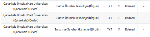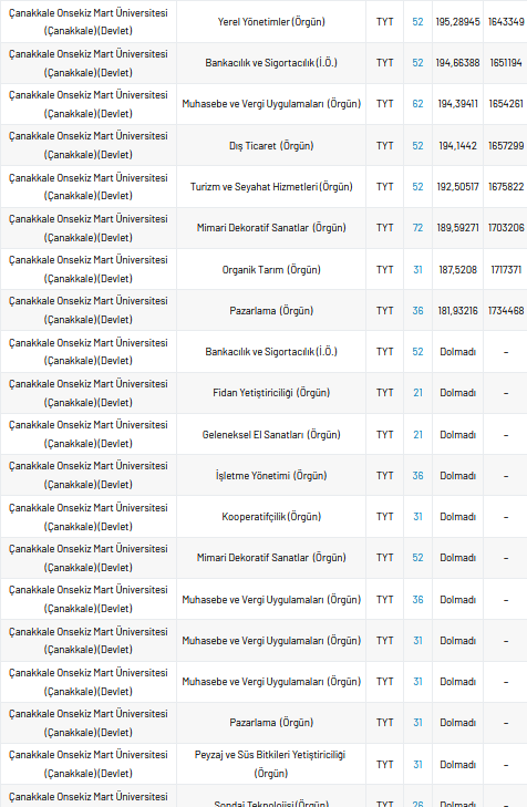 Çanakkale Onsekiz Mart Üniversitesi 2 yıllık taban puanları 2021, yüzdelik dilimleri ve kontenjan sayıları kaçtır?