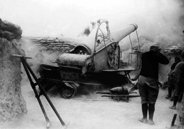 İngiliz savaş fotoğrafçısı Ernest Brooks tarafından kayda alınan videoda, atışa hazırlanan topun etrafında herkesin arkasını dönüp kulaklarını kapattığı görülüyor. Bir kişi ise topu ateşliyor. Atışın yapılmasından hemen sonra da hiç vakit kaybetmeyen yaklaşık 12 Fransız askeri topu yeniden dolduruyor. 5 kişi ucuna halat bağlanan namluyu indiriyor ve hemen mermi kaldırmak için yardıma koşuyor. Çıkrık yani makara sisteminin ucuna konulan mermiyi yine halat yardımıyla hep birden kaldırıyorlar. Nasıl zorlandıkları ise çok net görünüyor. Mermi topa yerleştirilmeden önce ise bir kişi tarafından yağlanıyor. Yine kulaklar kapatılıyor ve mermi topraklarımıza gönderiliyor.