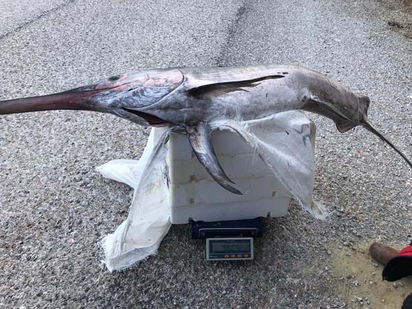 Dün akşam saatlerinde Gizem 89 isimli 6 metre 15 santim uzunluğundaki tekneyle Karanlık Liman mevkiinde kıyıdan 100 metre açıldı. Ağ atan balıkçılar bugün sabah aynı bölgeden ağları çektikleri sırada 48 kilo 340 gram ağırlığında, 2 metre 30 santim uzunluğunda dev bir kılıç balığı yakaladı.