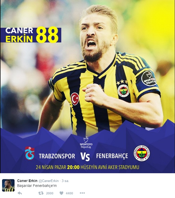Trabzonspor maçı öncesinde Caner Erkin bu fotoğrafı paylaşarak takımına destek vermişti.