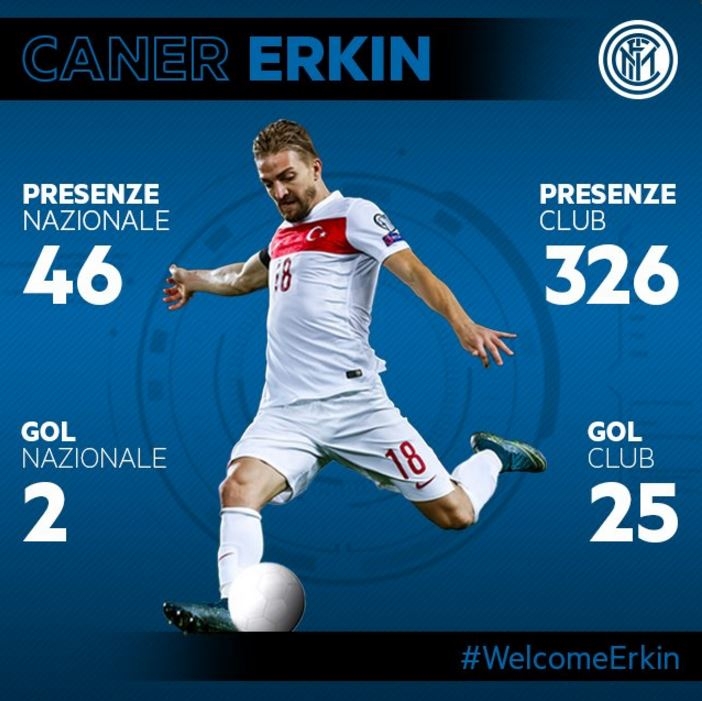 Inter'in web sitesinden yapılan açıklamada Caner Erkin'in 3 yıllık sözleşemeye imza attığı belirtildi.
