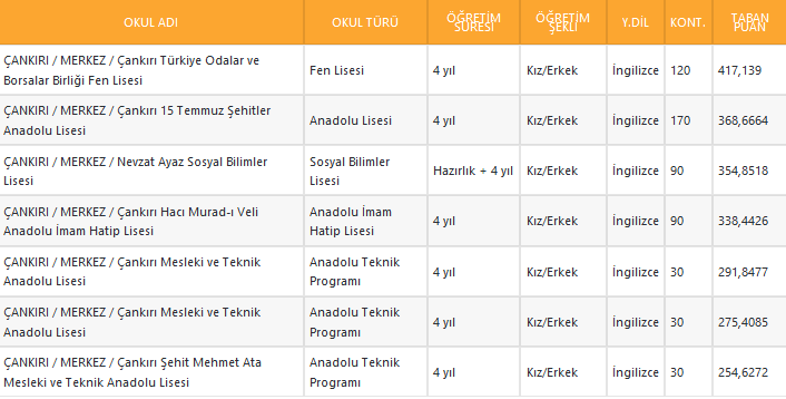 Çankırı liseleri taban puanı 2021 Çankırı liseleri başarı sıralaması |Çankırı liseleri kontenjanları
