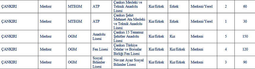 Çankırı’da bulunan liselerin kontenjan kapasitesi ne kadar?