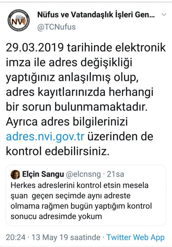 “İnanamayıp defalarca tekrar tekrar baktım. Kendi kendime, ‘Aynı şeyleri yapıp farkı sonuçlar alamazsın’ diye diye üstelik. Hepiniz seçmen sorgulamaya girin. YSK’nın internet sitesine göre ‘seçmen’ değiliz. Her seçim olduğu gibi internet üzerinden kaydımıza baktık ve bu sefer eşim de, ben de yokuz. Nasıl yani? 1.5 ayda dijital kütükten sildiniz mi bizi? Nüfus Müdürlüğü yolları göründü.”