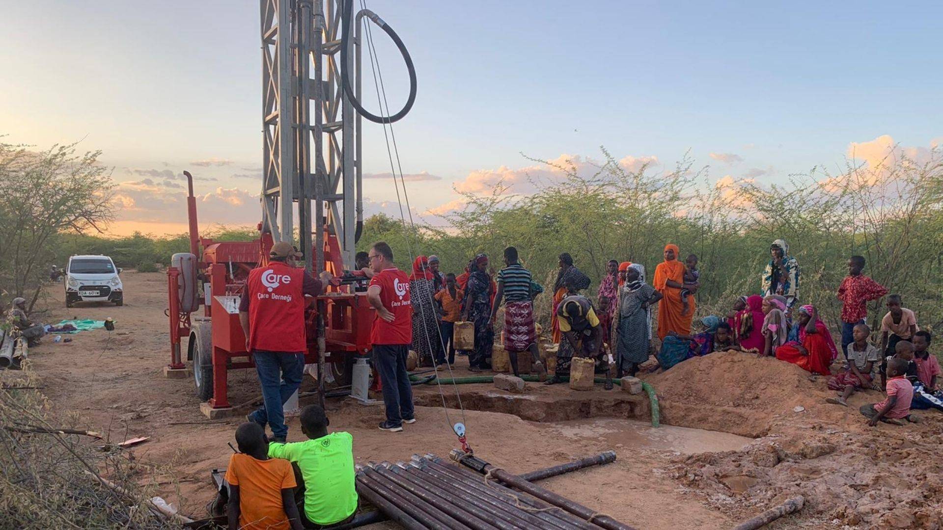 Çare Derneği Başkanı Mehmet Südlü, Yönetim Kurulu İnsani Yardım Sorumlusu Recep Bilge ilediğer personel ve gönüllülerden kurulan ekip şu an Kenya’da saha çalışmaları ve analizler yapıyor. Kurak bölgeler tespit ediliyor ve açılacak su kuyularının öncelikli olarak hangi bölgelerde açılacağı belirleniyor. Ekipte aynı zamanda Türkiye’den bölgeye getirilen bir sondaj makinesi operatörü de bulunuyor.