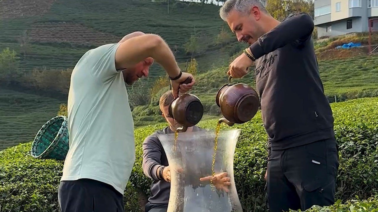 Çay tutkusu sınır tanımaz! Çaylığın içinde çekilen video viral oldu