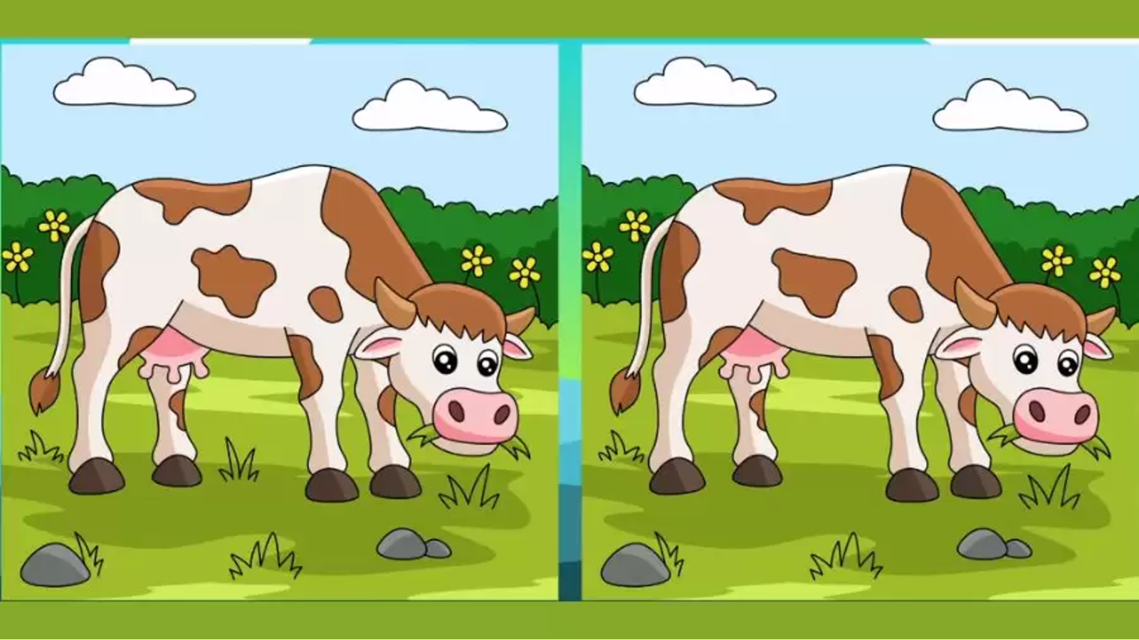İşte kafanızı karıştıracak yeni bir bulmacayla karşınızdayız. Çayırda otlayan iki ineği gösteren bu fotoğraflar arasında 3 fark var. Bulmak için ise 12 saniyeniz var.