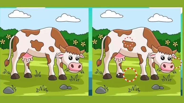 Çayırda otlayan iki inek arasındaki 3 farkı sadece yüksek IQ'su olanlar 12 saniyede buluyor