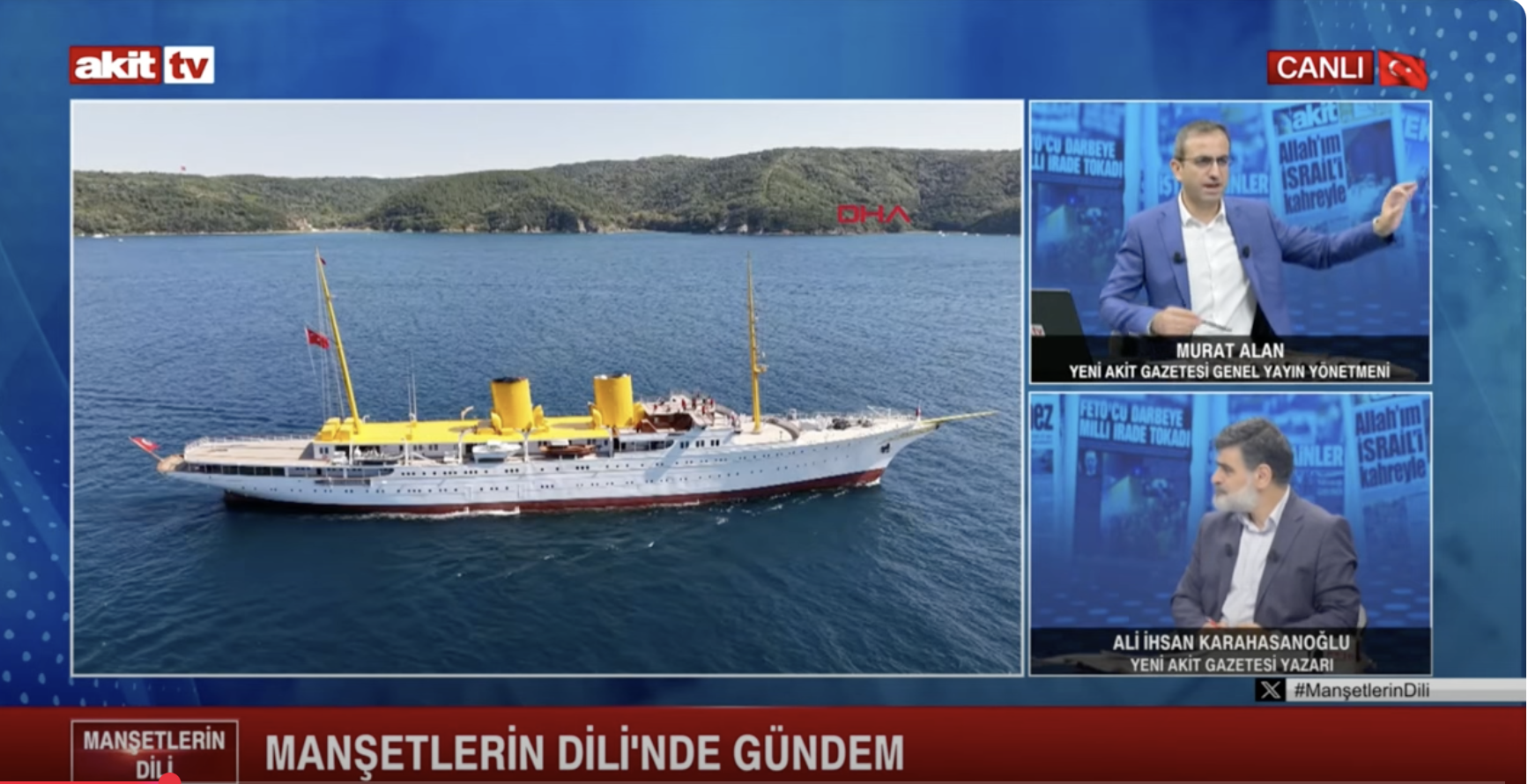 Akit TV’de Yeni Akit Gazetesi Genel Yayın Yönetmeni Murat Alan’ın sunumu ve Yeni Akit Gazetesi Yazarı Ali Karahasanoğlu’nun yorumlarıyla ekranlarınıza gelen Manşetlerin Dili’nde, kemalistlerin Savarona’yı düşürdüğü içler acısı durum da masaya yatırıldı.