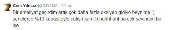 Cem Yılmaz ameliyat olduğunu esprili bir dille attığı bir tweetle ifade etti.