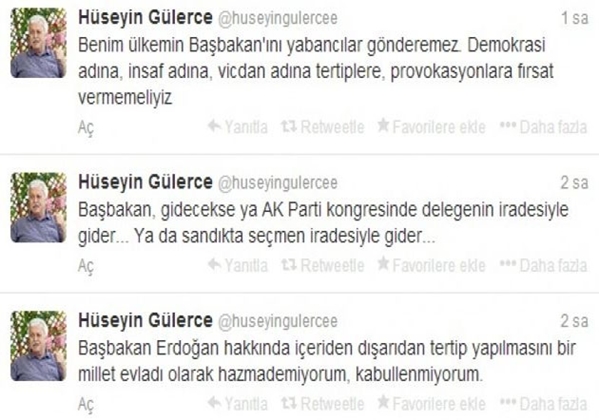 Gülen Grubu’nun önde gelen isimlerinden Hüseyin Gülerce, Grub'un medya organı Mehtap TV'deki tartışma programından çıkarıldı. Gülerce yaşanan olaylar üzerine hükümete destek twitleri de atmıştı.