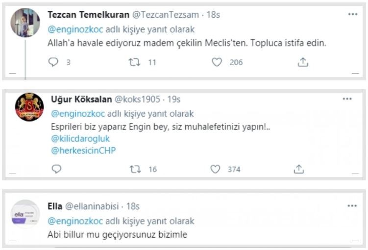 CHP Grup Başkanvekili ve Sakarya Milletvekili Engin Özkoç'un 'Cenab-ı Allah' ifadesine sosyal medyada CHP'lilerden tepki yağdı. Özkoç'a tepki gösteren bir CHP'li, "Cenab-ı Allah dediğiniz de bitti iş. Kimiz biz yahu? Cenab-ı Allah'ın kulları mı, yoksa, laik ve özgür bir ülkenin vatandaşları mı?" ifadeleri ile dindar kisvesine bürünen CHP'nin gerçek yüzünü tekrar hatırlattı.