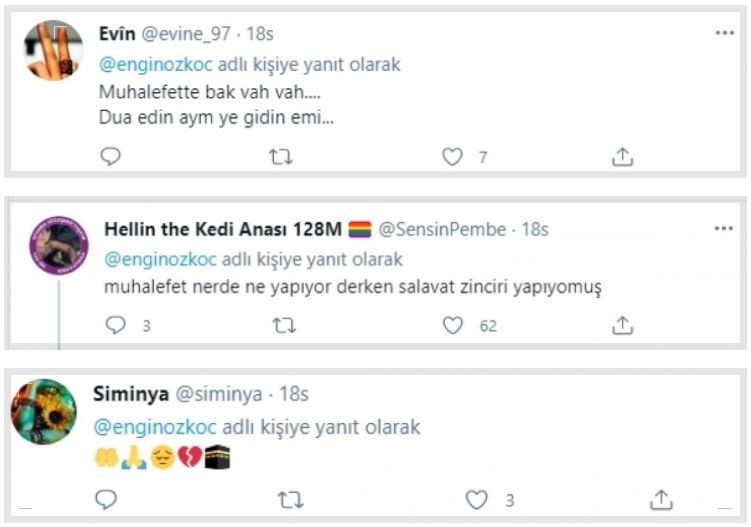 Sosyal medyada bazı CHP'liler, "Cenab-ı Allah dediğiniz de bitti iş. Kimiz biz yahu? Cenab-ı Allah'ın kulları mı, yoksa, laik ve özgür bir ülkenin vatandaşları mı?" diyerek tepkilerini gösterdi.