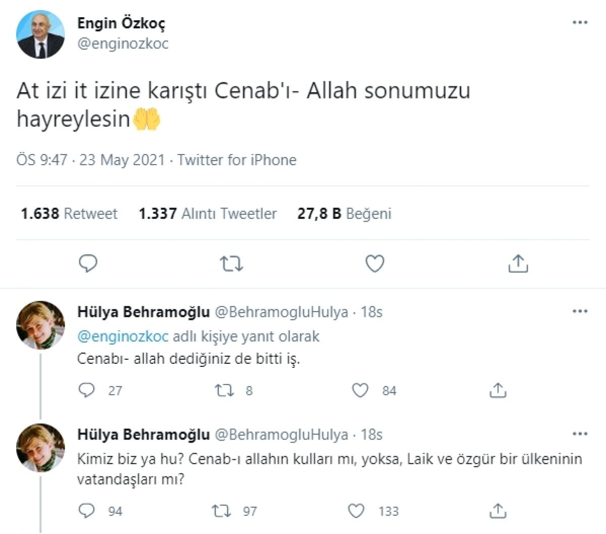 Engin Özkoç'un 'Cenab-ı Allah' ifadesine tepki