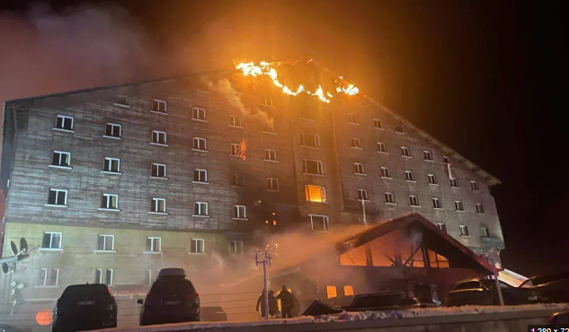 Bolu'da Köroğlu Dağları'nın zirvesinde yer alan Kartalkaya Kayak Merkezi'ndeki 12 katlı Grand Kartal Otel'de, dün sabaha karşı saat 03.30 sıralarında çıkan yangın kısa sürede büyüdü.