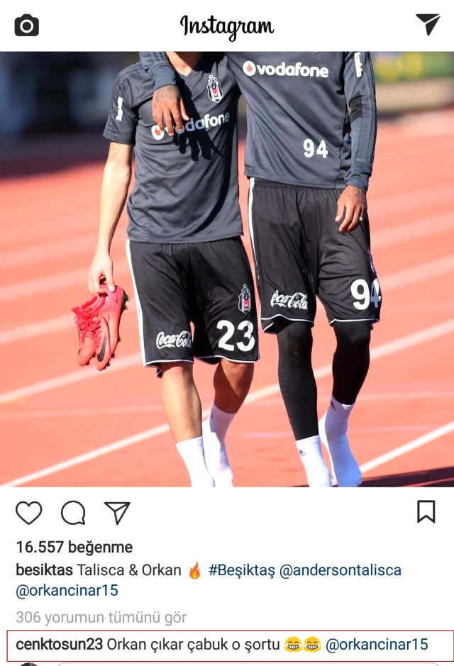 Bu detayı atlamayan siyah beyazlı taraftarlar fotoğrafın altına yüzlerce yorum yazarken Cenk Tosun da paylaşıma kayıtsız kalamadı. Fotoğrafın altına kendi hesabından 'Orkan çabuk çıkar o şortu' yazarak genç futbolcuya takıldı. Cenk'in bu yorumu sosyal medyada da gündem oldu.
