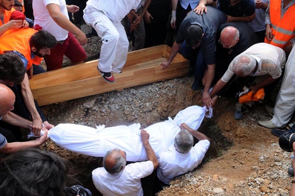 Cenazenin mezarlığa götürülmesi esnasında bazı kişilerin slogan atıp, Ünlü'nün fotoğraflarını taşıdığı görüldü.