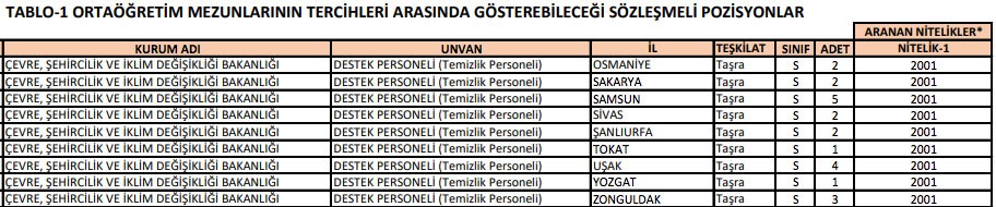 Çevre, Şehircilik ve İklim Değişikliği Bakanlığının sözleşmeli pozisyonlarına, 657 sayılı Devlet Memurları Kanununun 4/B maddesi kapsamında istihdam edilmek üzere ÖSYM tarafından yerleştirme yapılacaktır. Adaylar, KPSS-2022/9 Tercih Kılavuzuna saat 10.00’dan itibaren aşağıdaki bağlantıdan erişebileceklerdir.