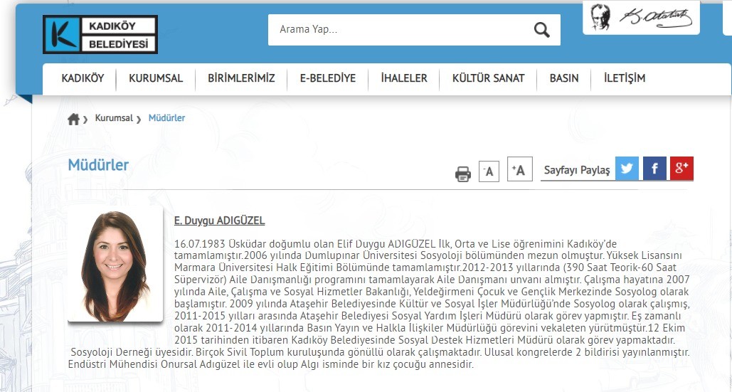 Mengü, “Yapsa önceden yapardı” diyerek Onursal Adıgüzel’i savunmaya kalktı… Adıgüzel eşini daha önce zaten Kadıköy’de işe sokturmuş!.. Ortaya çıkan belgede, Onursal Adıgüzel’in eşi Elif Duygu Adıgüzel’in CHP’li Kadıköy Belediyesi’nde Müdür olduğu görüldü.