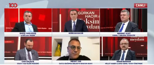 tv100'de yayınlanan Gürkan Hacır'la Taksim Meydanı programına, Datça Bağımsız Belediye Başkan Adayı Mesut Yar konuk oldu.