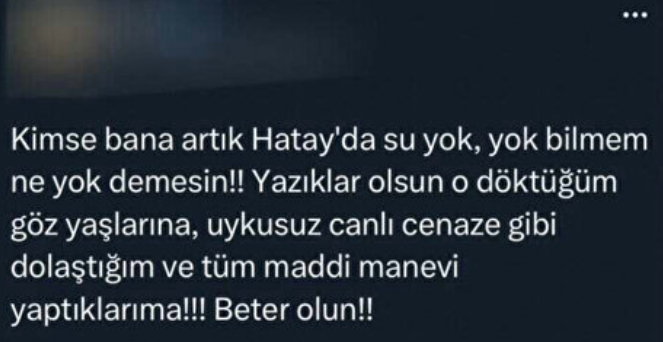 Depremzede gönderdiği paranın notuna, "Depremde bir şişe su almıştım Ankara Belediyesi'nin standından. Haram edenlere iletirsiniz." ifadelerini düşerek kendilerine nefret kusan CHP'li seçmenlere anlamlı bir cevapta bulundu.