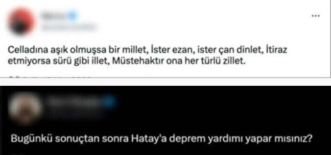 Ancak CHP seçmenleri Erdoğan'a destek veren depremzedelere nefret kustu.