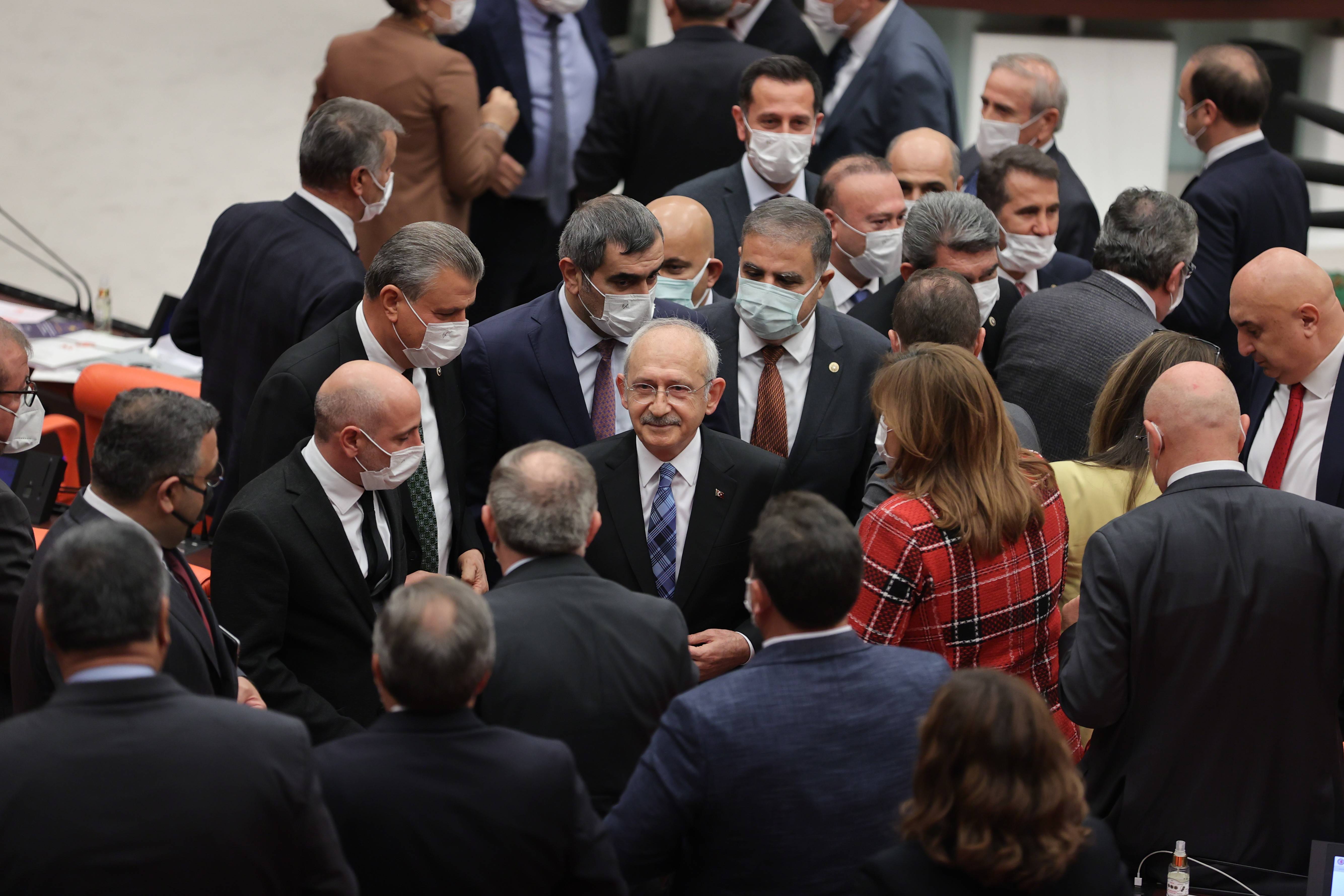 Öte yandan Meclis'e verilen aranın ardından CHP Grup Başkanvekili Özgür Özel söz aldı. Özel, Kılıçdaroğlu'nun hareketiyle ilgili, "Genel Başkanımız elini elinin sırtına vurmuştur. Sırtına yük bindirmek anlamındaki vücut dilidir. Hiçbir gruba karşı yapılmadı." dedi.