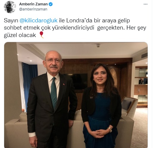 CHP lideri Kemal Kılıçdaroğlu, İngiltere seyahati kapsamında 2007-2015 arasında Taraf Gazetesi’nde yazarlık yapan gazeteci Amberin Zaman ile görümüştü.