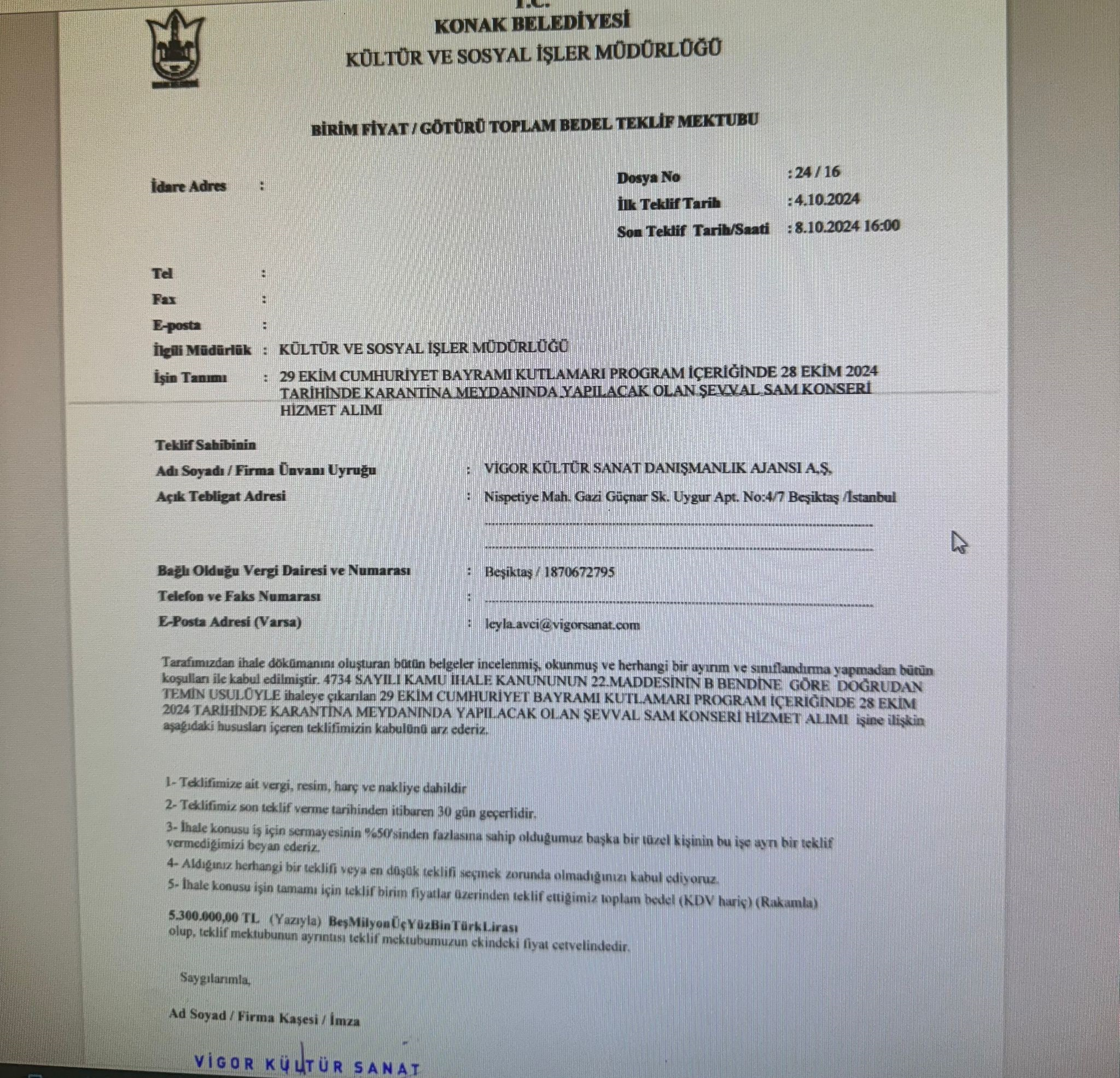 Gelen tepkiler üzerine Konak Belediyesi konseri iptal etmek zorunda kalmıştı.