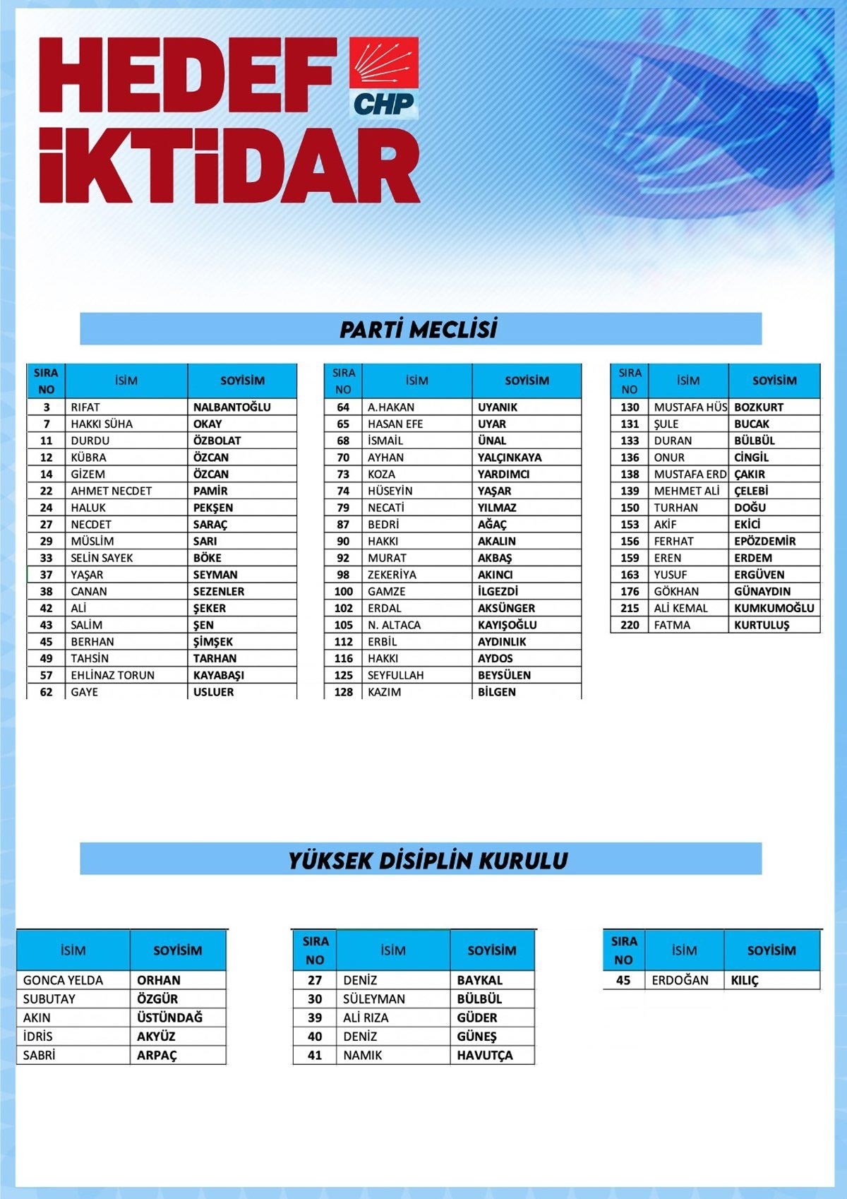 CHP Parti Meclisi (PM) isim listesi
