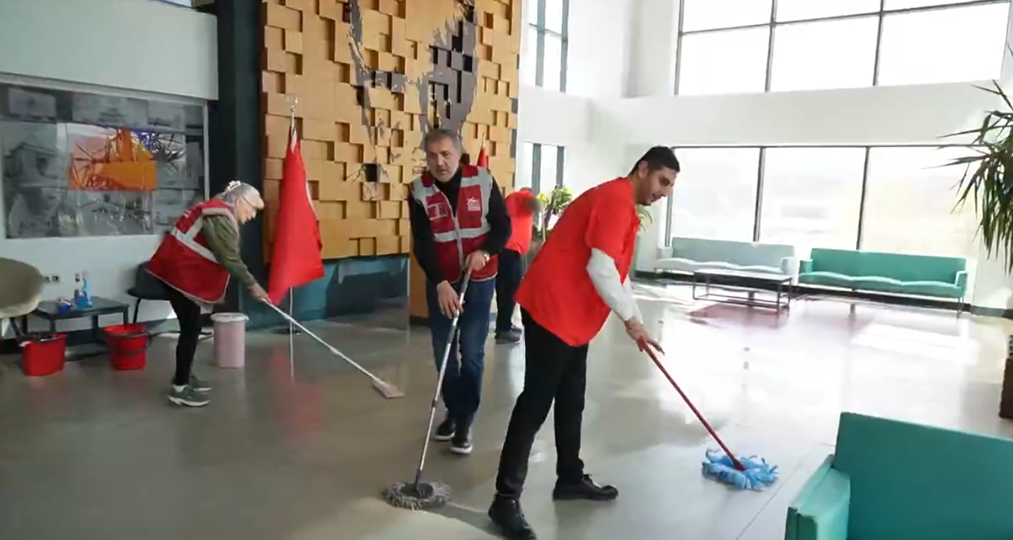 Yaşanan olayın ardından, CHP'li gönüllüler ve partililer tepkiyi temizlikle göstermeyi seçti. Ellerine temizlik malzemelerini alan partililer, genel temizlik çalışması başlattı.