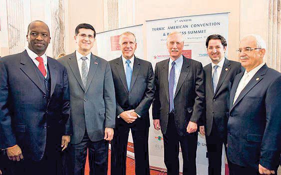 Türki Amerikan Birliği'nin yıllık kurultay açılışı. Fotoğraftakiler (soldan sağa) Kenya Ulusal Ticaret Odası Başkanı Kiprono Kittony, TAA Başkanı Faruk Taban, Kuzey Carolina Senatörü Thom Tillis, Arkansas Senatörü Angus King, CHP Bursa Milletvekili Ayhan Erdemir ve İzmir Bağımsız Milletvekili İlhan İşbilen.
